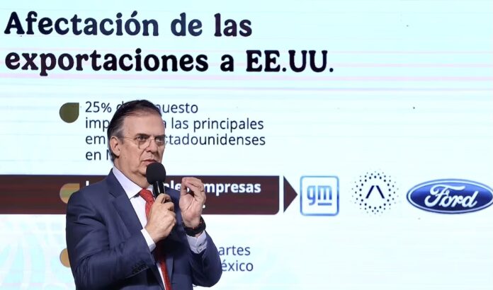 México, 27 de noviembre.- Marcelo Ebrard, secretario de Economía, afirmó que el 25 por ciento de aranceles que pretende imponer Donald Trump, presidente electo de los Estados Unidos, a productos mexicanos serían un “tiro en el pie” ya que se afectaría al sector automotriz y se perderían 400 mil empleos en ese país.