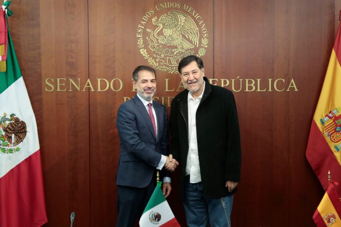 Este lunes, Gerardo Fernández Noroña, presidente del Senado, recibió a Juan Duarte Cuadrado, embajador de España en México.