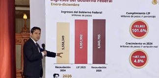México, 19 de enero.- La recaudación del Gobierno Federal durante 2025 alcanzó un nivel histórico al cerrar en 6,045 billones de pesos, cifra que...