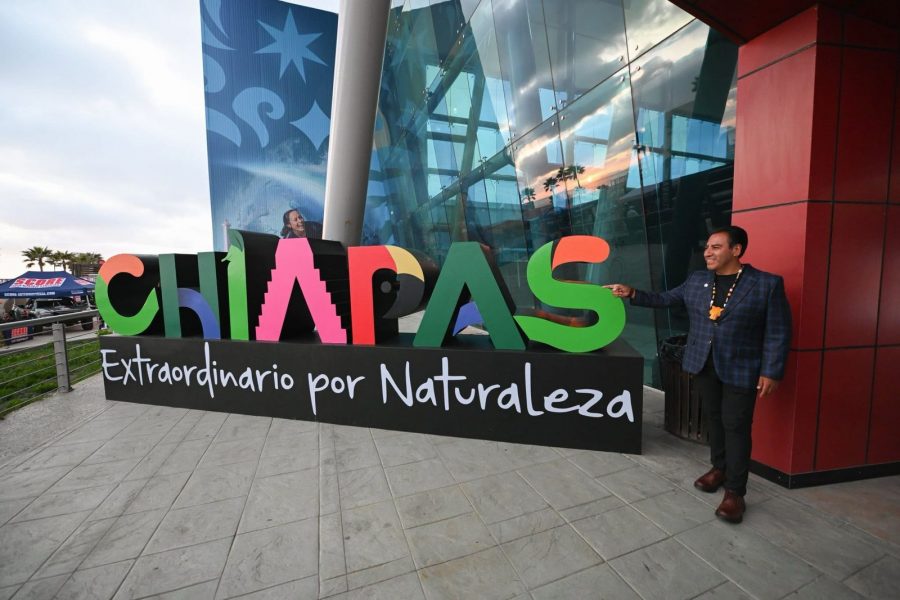 Durante su visita al Baja California Center, el gobernador participó en el corte de listón inaugural del Tianguis Turístico, recorrió los pabellones estatales y celebró junto a los representantes chiapanecos, bailando con parachicos y chiapanecas al ritmo del folclore tradicional.
