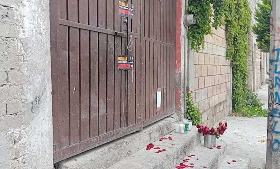 A la entrada del domicilio donde fue hallado, colocaron flores, veladoras, pétalos de rosa y una hoja con un pasaje bíblico de Mateo 19:13-14.