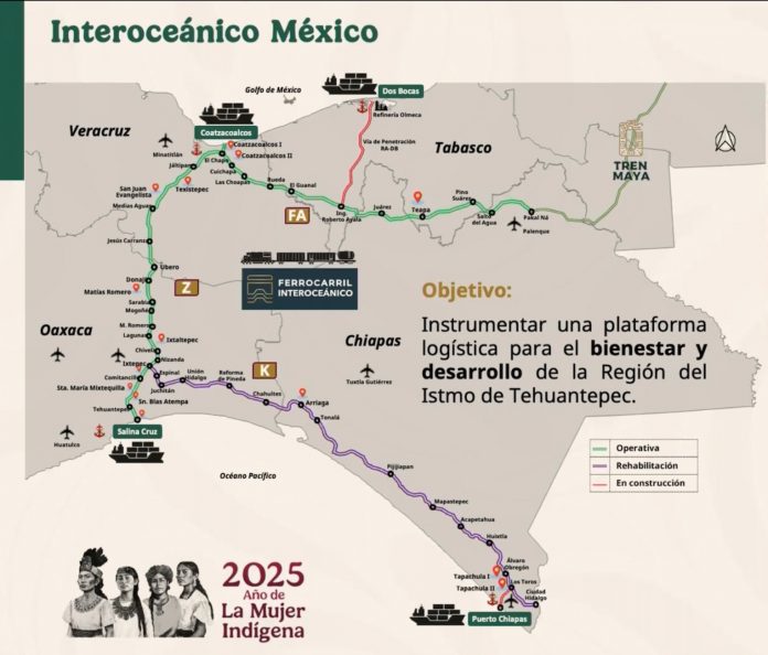 Durante su exposición de resultados, el funcionario destacó que la influencia territorial y marítima del corredor abarca los estados de Veracruz, Oaxaca, Tabasco y Chiapas, donde se coordinan las administraciones portuarias de Salina Cruz y Puerto Chiapas en el Pacífico, y las de Coatzacoalcos y Dos Bocas en el Atlántico, unidas por el ferrocarril interoceánico que cruza 120 municipios con más de cinco millones de habitantes.