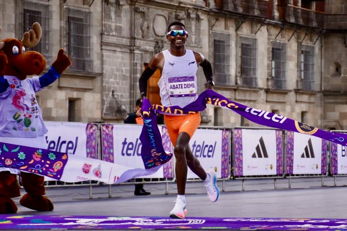 En la rama varonil élite, el etíope Tadu Abate Deme, de 27 años, se llevó la victoria con un tiempo no oficial de 2 horas, 11 minutos y 15 segundos, tras cruzar la meta en solitario en la Plaza de la Constitución.