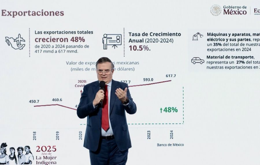 Como segunda buena noticia, Ebrard señaló que las exportaciones mexicanas continúan al alza, a pesar del contexto global marcado por nuevos aranceles y ajustes comerciales.