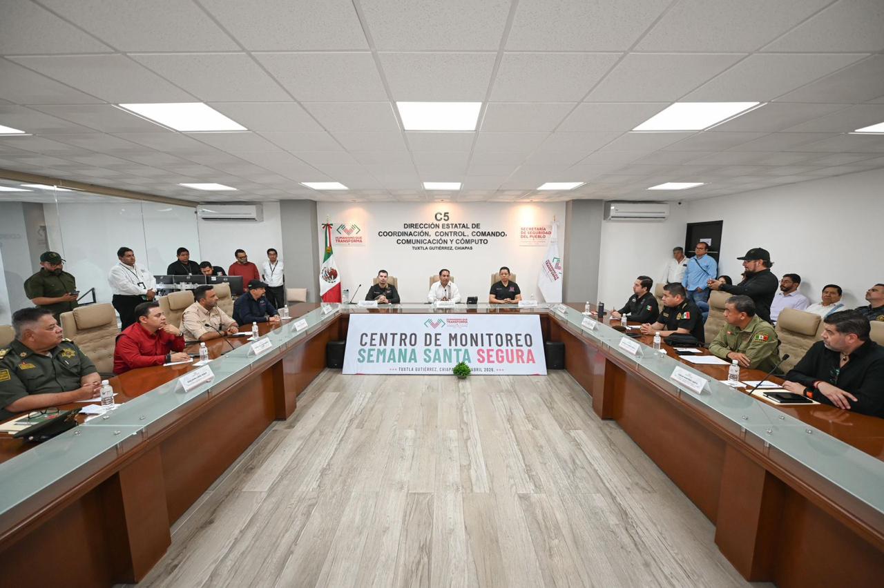Tuxtla Gutiérrez, Chiapas, 2 de abril.- Con el objetivo de garantizar la seguridad y atención integral durante el periodo vacacional de Semana Santa, el gobernador Eduardo Ramírez Aguilar encabezó una reunión con el Gabinete de Seguridad, el cual se mantiene en sesión permanente para coordinar acciones en materia de seguridad, salud y protección civil, tanto para habitantes como para turistas que visitan Chiapas.