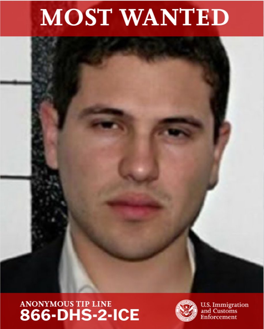 “Recompensa de $10M por información que conduzca al arresto/condena de Iván Archivaldo Guzmán Salazar, hijo del famoso Joaquín ‘El Chapo’ Guzmán Loera”, posteó el ICE, al tiempo que advirtió que el capo “debe ser considerado armado y peligroso”.