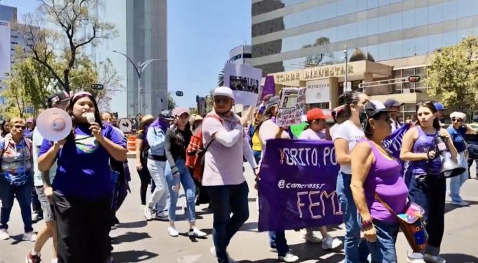 Antes de las 11:00 horas, integrantes de colectivos feministas se congregaron en la Glorieta de las Mujeres que Luchan, para exigir que no haya protección de autoridades ni del partido en el poder para el ex futbolista.
