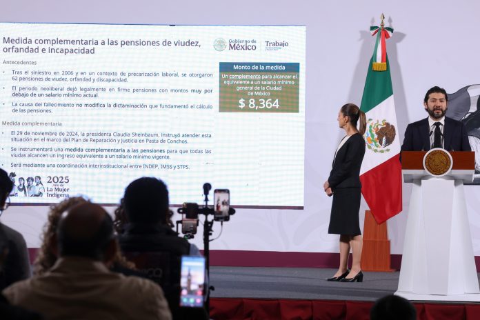 Marath Bolaños anunció que se otorgará a partir de mayo un complemento a las pensiones de viudez, orfandad e incapacidad a viudas de los mineros, con lo que se otorgarán 8 mil 300 pesos mensuales a cada una.