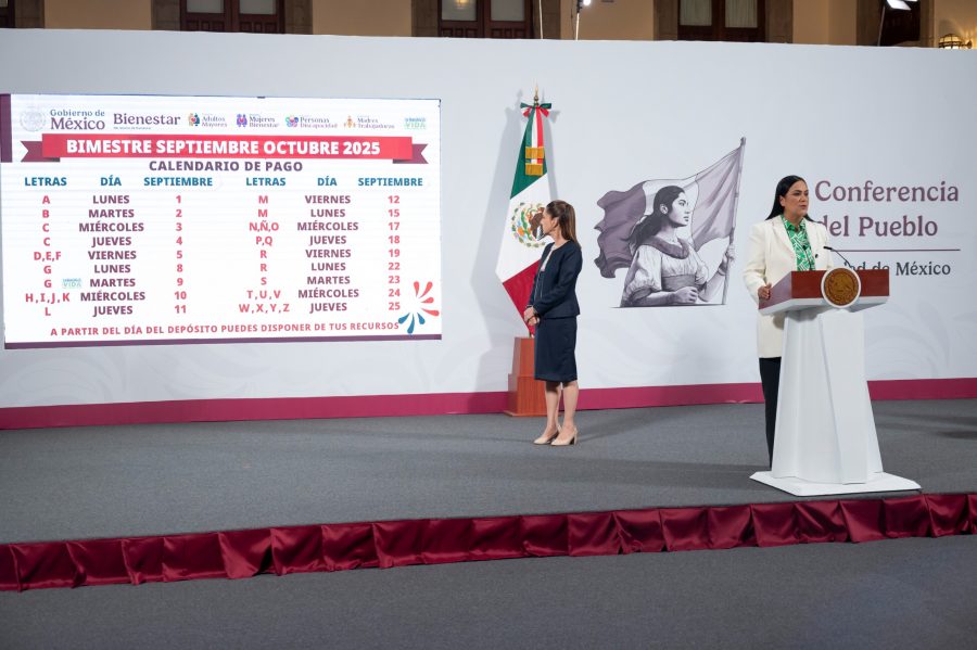 México, 8 de septiembre.- La secretaria del Bienestar, Ariadna Montiel, informó que comenzó el pago del periodo bimestral septiembre-octubre de las pensiones y programas sociales, que se realizará hasta el próximo 25 de septiembre.