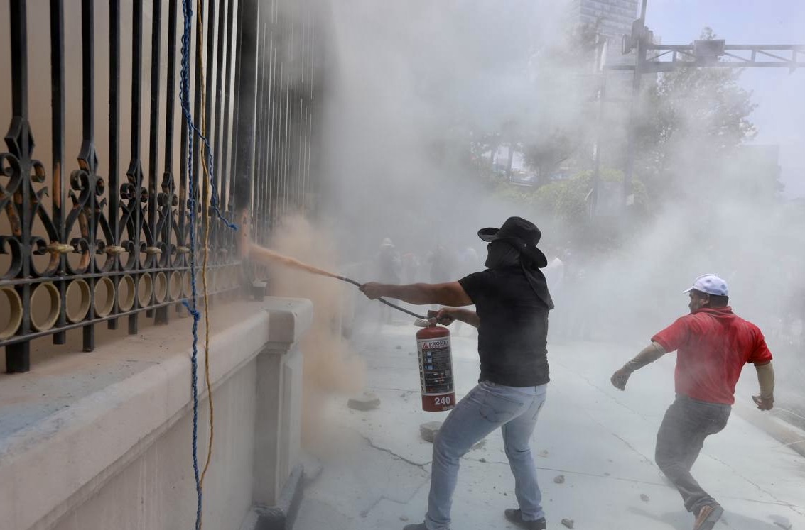 El personal de seguridad utilizó extintores para dispersar a los inconformes.