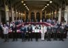 Otros llevan estatuas de la Virgen en sus brazos mientras reciben la bendición de un sacerdote.