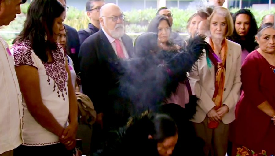 La senadora morenista acudió a un ritual de purificación en La Cuña del Senado, que encabezó la médica tradicional y partera chamula, Guadalupe Pérez, previo al inicio del Foro Nacional: Reconocimiento y Pluralismo para los Pueblos y Comunidades Indígenas y Afromexicanos, convocado por la senadora chiapaneca Edith López Hernández, presidenta de la Comisión de Pueblos Indígenas y Afromexicanos.