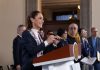 Antes, apareció el cantante Beto Vega, quien interpretó la canción que le escribió a Saúl y será también quien entone el Himno Nacional mañana.