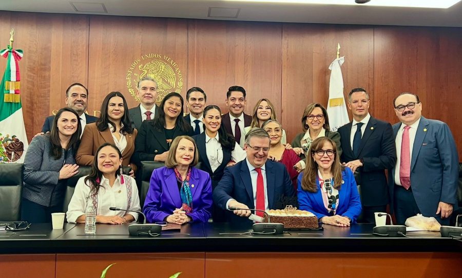 Previo a su comparecencia, un grupo de senadores cantó “Las Mañanitas”al secretario Marcelo Ebrard en ocasión de su cumpleaños que fue el pasado 10 de octubre.