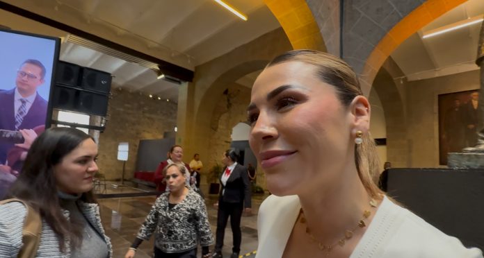La gobernadora fue entrevistada en la vieja casona de Xicoténcatl en el marco del informe de actividades de Gerardo Fernández Noroña, como presidente del Senado.