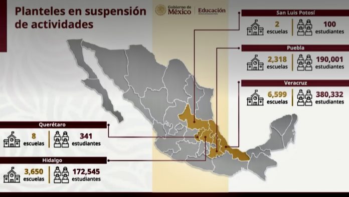 • Hidalgo: 3,650 escuelas suspendidas, con 172 mil alumnos sin actividades.