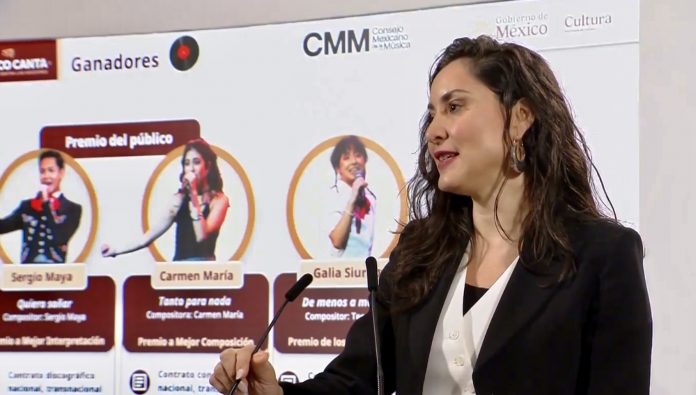 México, 10 de octubre.- La secretaria de Cultura federal, Claudia Curiel de Icaza, destacó la amplia participación y el impacto internacional del concurso México Canta, cuya final fue seguida en 39 países y reunió a más de 11 millones de espectadores a través de los medios públicos del país.