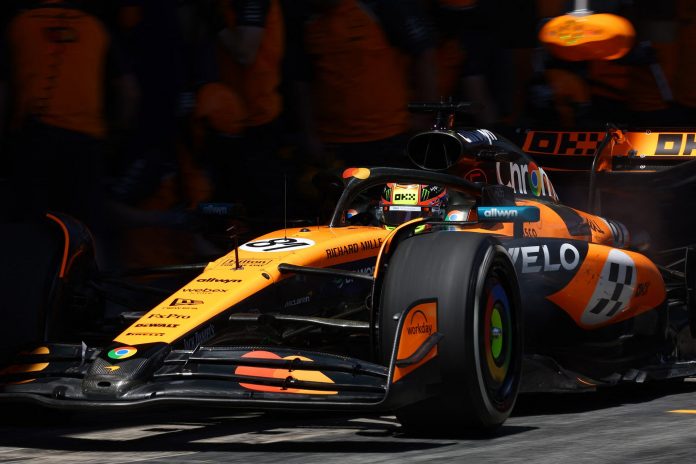 Piastri había establecido un tiempo objetivo de un minuto y 11,836 segundos en el top 10 de los tiroteos, pero Norris fue 0,017 más rápido gracias a un remolque aerodinámico oportunista, con McLaren todavía en una liga propia a pesar de las pruebas de flexión más estrictas del ala delantera.