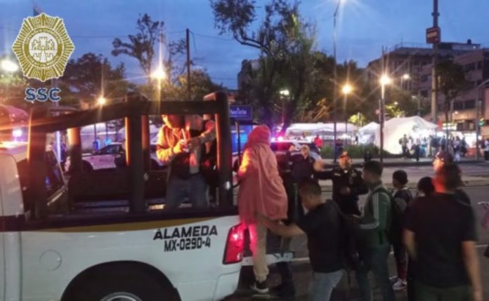 A bordo de camionetas de la corporación, los uniformados realizan traslados entre las estaciones Nativitas y Tasqueña, mientras que personal de la Subsecretaría de Control de Tránsito auxilia en la salida de pasajeros de las estaciones que quedaron sin servicio.