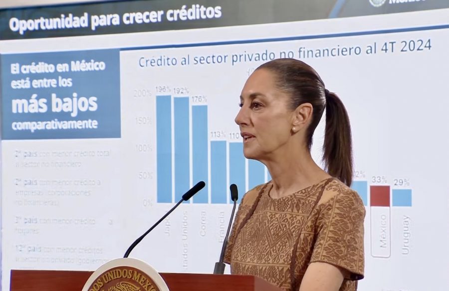 Sheinbaum destacó que en México solo el 33 por ciento del sector privado accede al crédito, una cifra considerablemente baja en comparación con otros países.