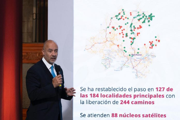 “En la atención de la emergencia se llevan 220 comunidades ya con paso, de un total de 288 iniciales; el último día fueron ocho, y en el fin de semana fueron 25 caminos los que se lograron aperturar”, declaró Esteva durante su informe.
