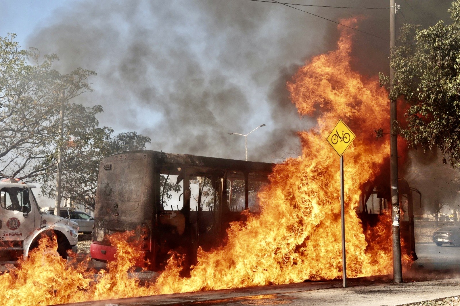 En ese punto, elementos de la Guardia Nacional se enfrentaron con integrantes del CJNG, quienes presuntamente estaban deteniendo vehículos para incendiarlos como parte de una reacción violenta al operativo en Tapalpa.