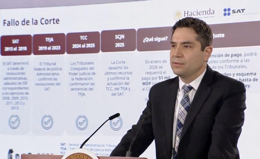 Con esta resolución, Martínez Dagnino subrayó que el SAT tiene la obligación legal de continuar con el procedimiento de cobro, por lo que en enero de 2026 se notificará formalmente el requerimiento de pago, conforme a lo establecido en el Código Fiscal de la Federación.