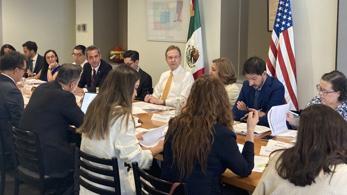“Nos reunimos en la Embajada de México en Estados Unidos con el grupo de senadoras y senadores de cuatro partidos políticos, para preparar los argumentos y datos que nos permitirán negociar, concientizar y defender con diplomacia los intereses de nuestra comunidad migrante”, informó el embajador Moctezuma a través de redes sociales.