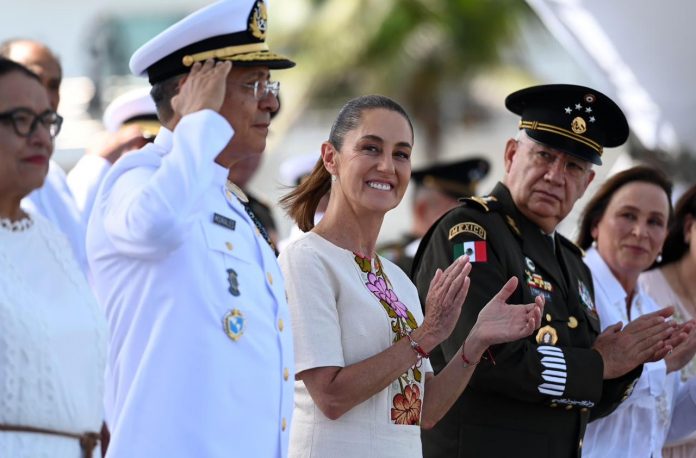 Durante la conmemoración del 204 aniversario de la Armada de México y del 201 aniversario de la Promulgación de la Constitución de 1824 en Veracruz, Sheinbaum Pardo felicitó a los titulares de la Secretaría de la Defensa Nacional (Sedena), general Ricardo Trevilla, y de la Semar, almirante Raymundo Pedro Morales Ángeles, a quienes reconoció por su entrega, valentía, honestidad y patriotismo.